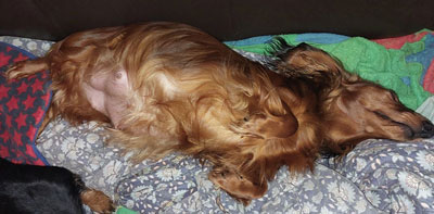 Nane hat so gar keine Lust sich zu bewegen, sie liegt fast den ganzen Tag in ihrer Hütte. Bei dem Regen nach draußen geht für schwangere Dackels gar nicht 🤣